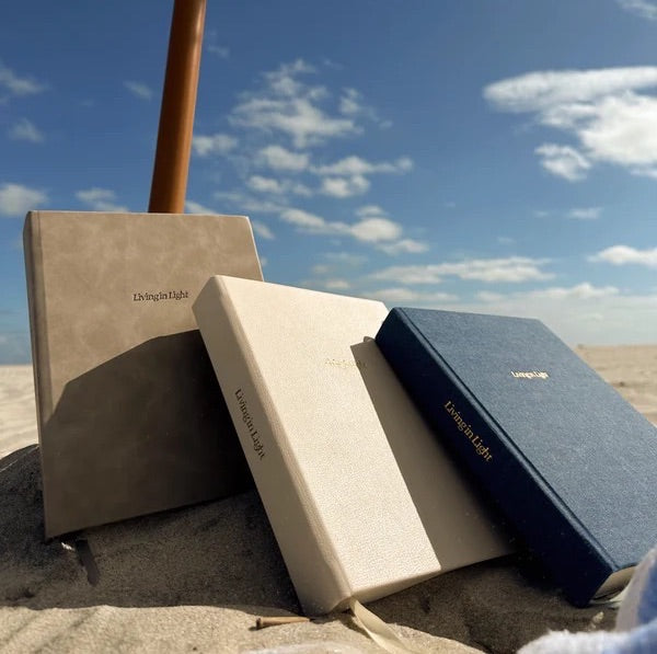 Greige, ivory leather, or denim cover with 100 GSM cream paper—durable, refillable, and travel-ready.